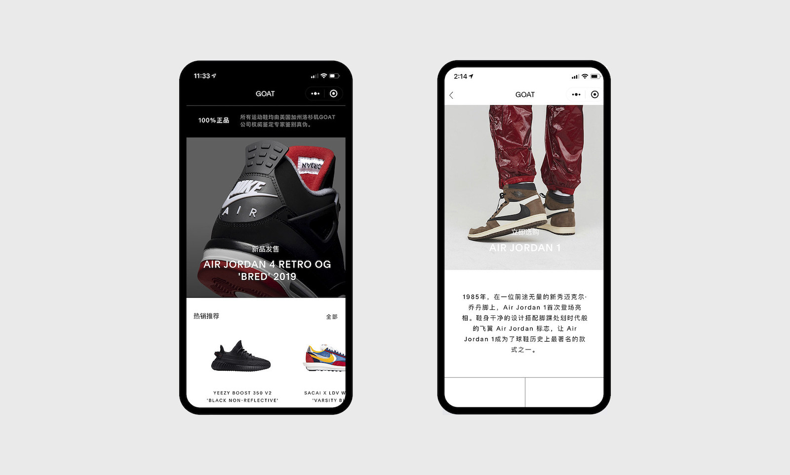 GOAT 由 Eddy LU 和 Daishin Sugano 兴办,两位都是球鞋爱好者。Daishin 的父亲为他买的榜首双球鞋是 Air Jordan 5 Grapes,23 年后这双球鞋再次复刻,他在网上满怀等待地下单购买,到手后却发现球鞋是假的,Daishin 与 Eddy 所以便达到一致——要打造一个安全可靠的球鞋交易渠道。